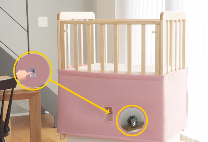 また、片手で軽く押すだけでベッドを揺らすことが出来るので、家事の途中や食事中、ソファやベッドで休みながらでも操作出来ます。ママ、パパの体の負担が大きく軽減されます。